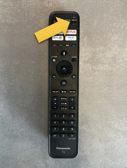 Auf der TV-Fernbedienung "Input" drücken und "HDMI 2" als Quelle wählen.