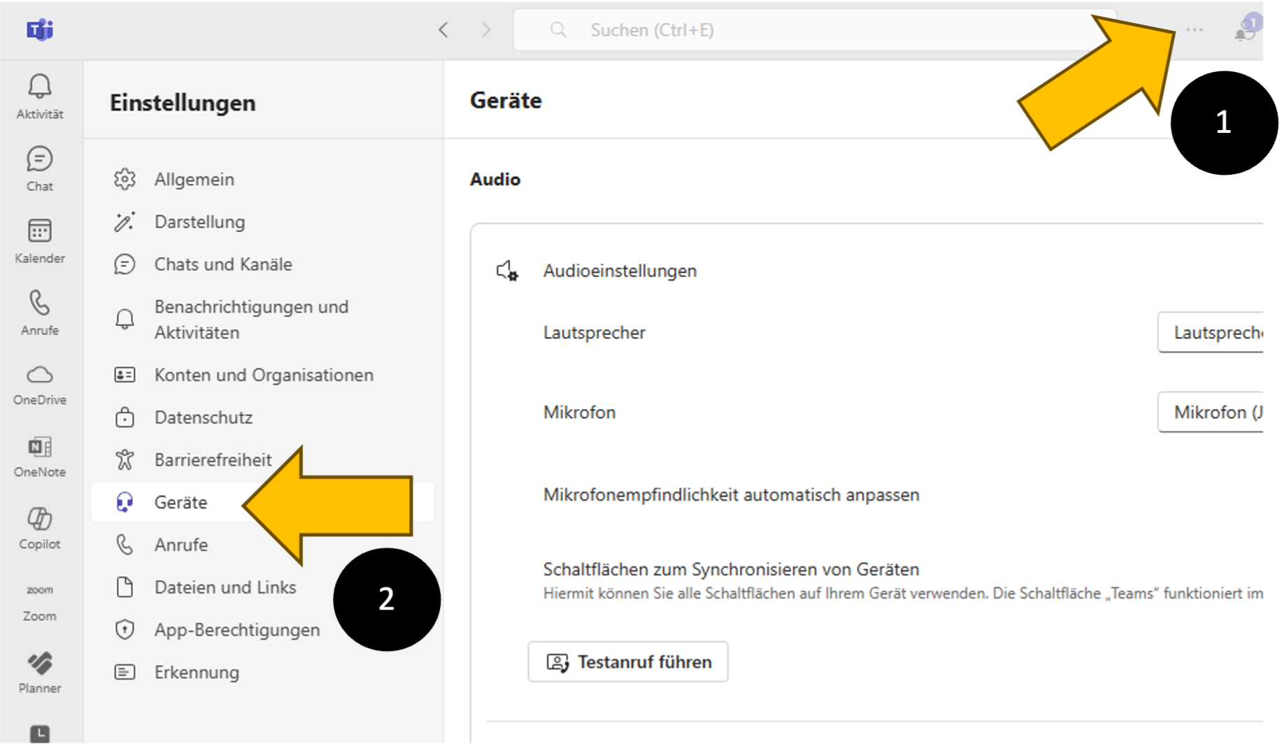 Schritt 3: Auswahl von Mikrofon, Lautsprecher und Kamera in der Videokonferenz-Software