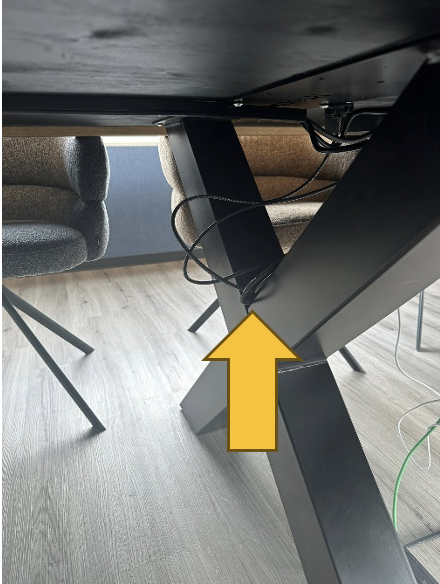 1) Unter dem Tisch die Kabel bei dem X-Ständer suchen.